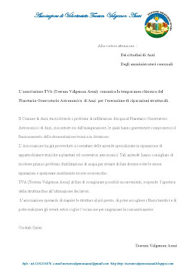 ORARI APERTURA FESTIVITA' NATALIZIE DEL PLANETARIO E DEL PRESEPE POLISCENICO